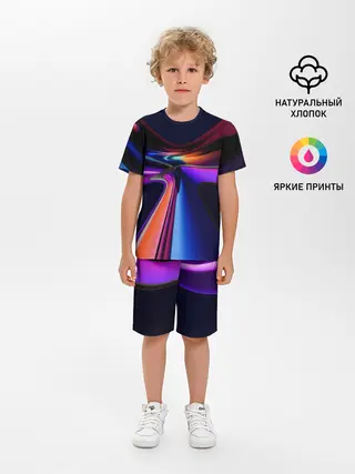 Детская пижама с шортами / Красочные светящиеся линии
