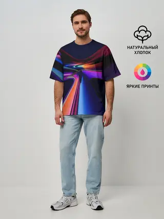 Мужская футболка оверсайз / Красочные светящиеся линии