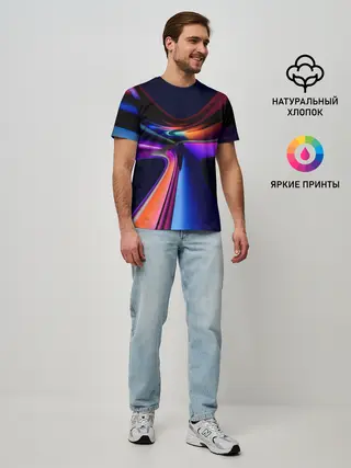 Мужская базовая футболка / Красочные светящиеся линии