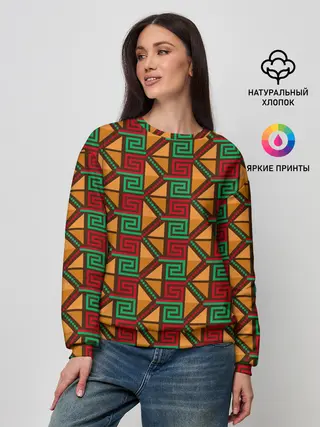 Лонгслив женский. Хлопок / Узор коренных индейцев америки