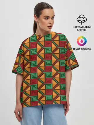 Женская футболка оверсайз / Узор коренных индейцев америки