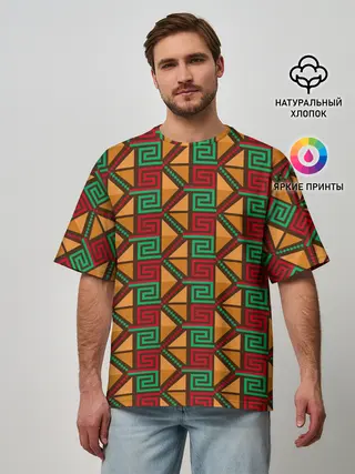 Мужская футболка оверсайз / Узор коренных индейцев америки