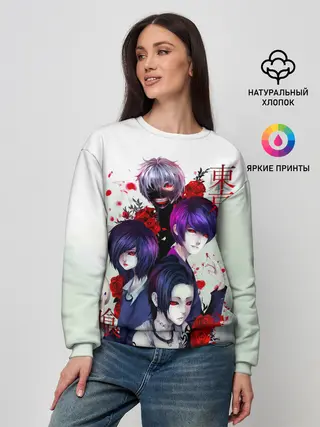 Женский свитшот / Канеки с девчонками - Токийский гуль