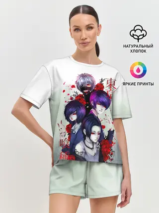 Женская пижама с шортами / Канеки с девчонками - Токийский гуль