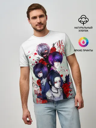 Мужская базовая футболка / Канеки с девчонками - Токийский гуль