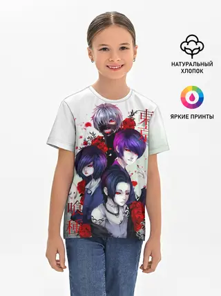 Детская базовая футболка / Канеки с девчонками - Токийский гуль