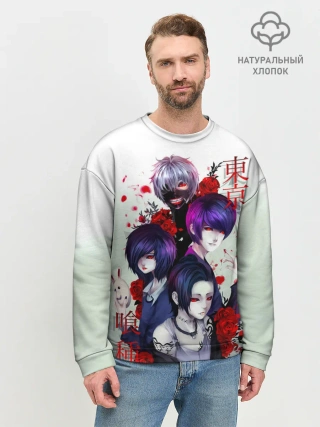 Мужской свитшот базовый / Канеки с девчонками - Токийский гуль