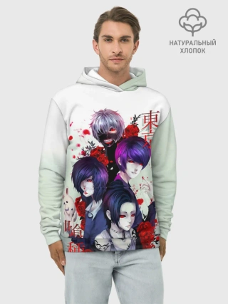 Худи мужской база хлопок / Канеки с девчонками - Токийский гуль