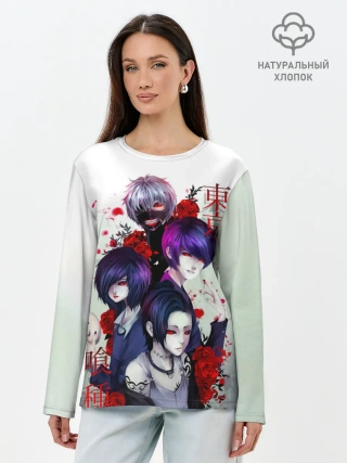 Лонгслив женский. Хлопок / Канеки с девчонками - Токийский гуль