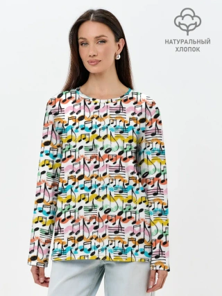 Лонгслив женский. Хлопок / Музыкальные Ноты