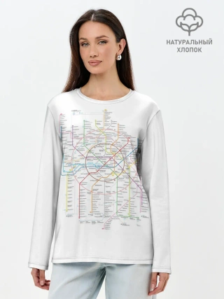 Лонгслив женский. Хлопок / Схема метро, МЦК, МЦД 2021
