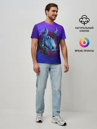 Мужская базовая футболка / Retrowave Neon Horse