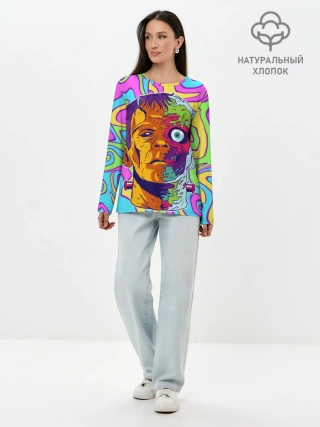 Лонгслив женский. Хлопок / Психоделический Франкенштейн