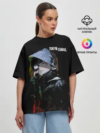 Женская футболка оверсайз / Канеки Кен с капюшоном