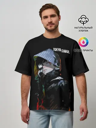Мужская футболка оверсайз / Канеки Кен с капюшоном