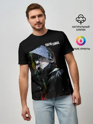 Мужская базовая футболка / Канеки Кен с капюшоном