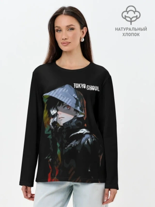 Лонгслив женский. Хлопок / Канеки Кен с капюшоном