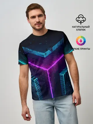 Мужская базовая футболка / Неоновые грани 3D