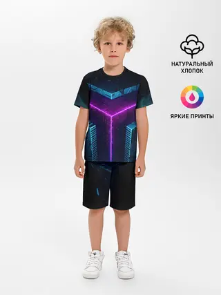 Детская пижама с шортами / Неоновые грани 3D