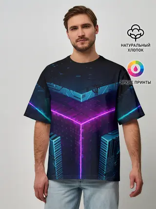 Мужская футболка оверсайз / Неоновые грани 3D