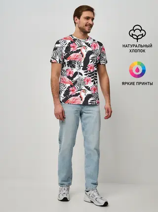 Мужская базовая футболка / фламинго и попугаи