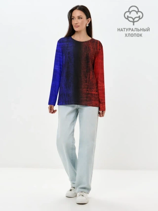 Лонгслив женский. Хлопок / Сине-Красная Текстура