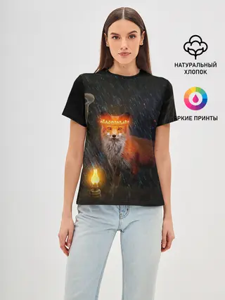 Женская базовая футболка / Лиса с огненной короной