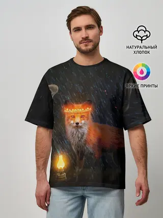 Мужская футболка оверсайз / Лиса с огненной короной