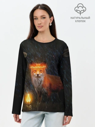 Лонгслив женский. Хлопок / Лиса с огненной короной