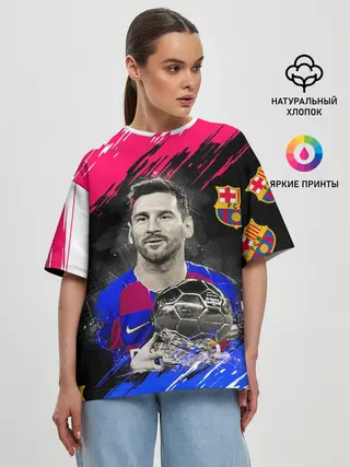 Женская футболка оверсайз / ЛИОНЕЛЬ МЕССИ / БАРСЕЛОНА
