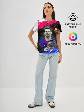 Женская базовая футболка / ЛИОНЕЛЬ МЕССИ / БАРСЕЛОНА