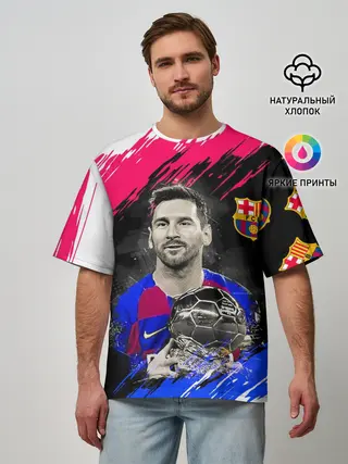 Мужская футболка оверсайз / ЛИОНЕЛЬ МЕССИ / БАРСЕЛОНА