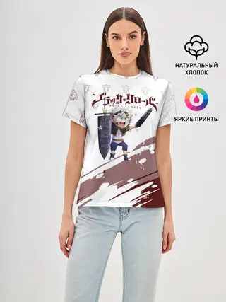 Женская базовая футболка / Аста кричит с мечом Чёрный клевер