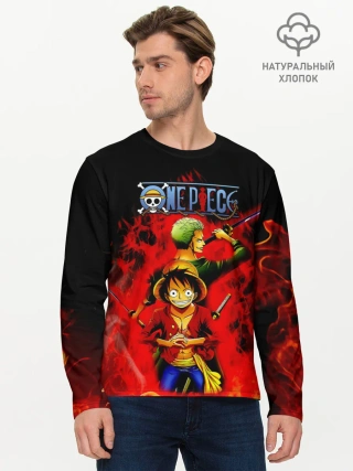 Мужской лонгслив базовый / Зоро и Луффи в огне One Piece
