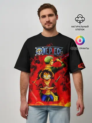 Мужская футболка оверсайз / Зоро и Луффи в огне One Piece