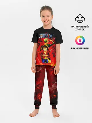 Детская пижама с брюками / Зоро и Луффи в огне One Piece