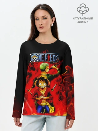 Лонгслив женский. Хлопок / Зоро и Луффи в огне One Piece