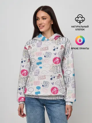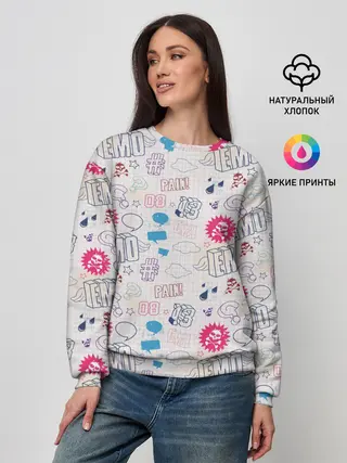 Лонгслив женский. Хлопок / Граффити-школьная тетрадь