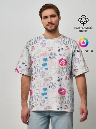 Мужская футболка оверсайз / Граффити-школьная тетрадь