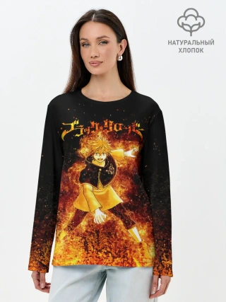Лонгслив женский. Хлопок / Чёрный клевер Аста в огне