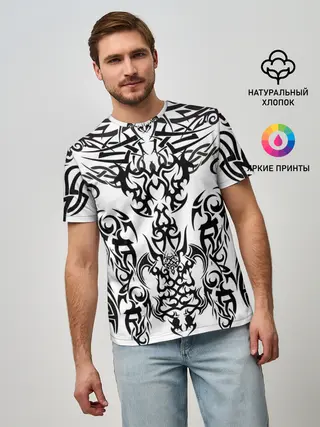 Мужская базовая футболка / ТАТУ ЧЕРНО БЕЛОЕ УЗОР