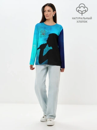 Лонгслив женский. Хлопок / Силуэт Фредди Меркьюри группа Queen