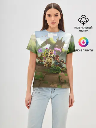 Женская базовая футболка / МАЙНКРАФТ ГЕРОИ ПРОТИВ ЗЛА