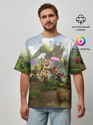 Мужская футболка оверсайз / МАЙНКРАФТ ГЕРОИ ПРОТИВ ЗЛА