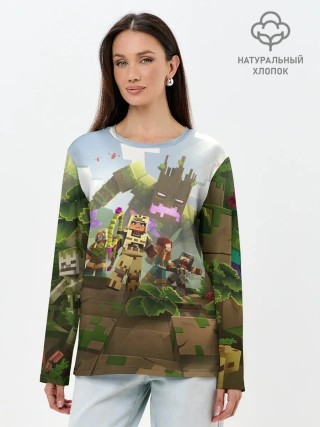 Лонгслив женский. Хлопок / МАЙНКРАФТ ГЕРОИ ПРОТИВ ЗЛА