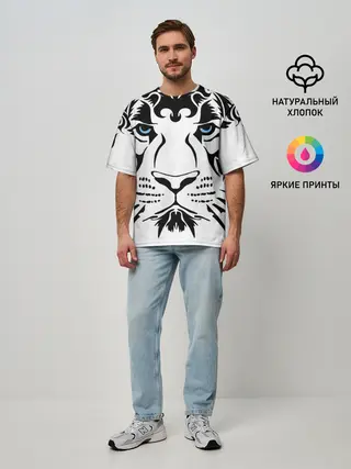Мужская футболка оверсайз / Водяной голубоглазый тигр