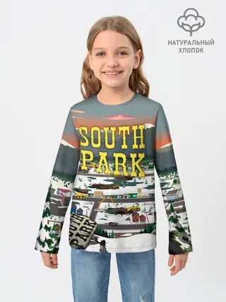 Мужской лонгслив базовый / Южный Парк разрушенный город