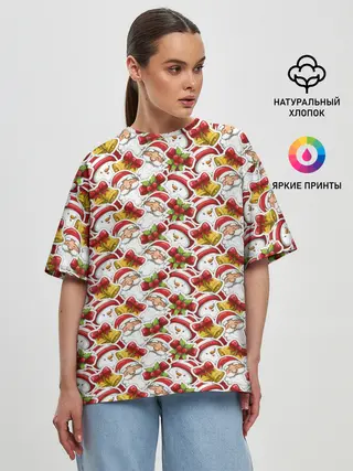 Женская футболка оверсайз / Дед Мороз и Снеговик