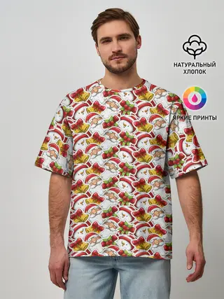 Мужская футболка оверсайз / Дед Мороз и Снеговик