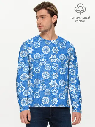 Мужской лонгслив базовый / Снежные Новогодние Узоры
